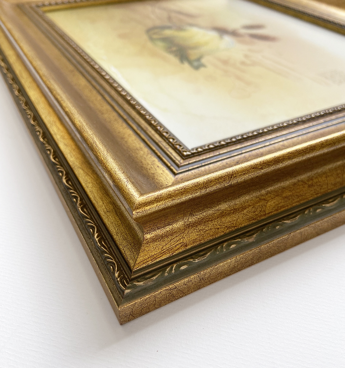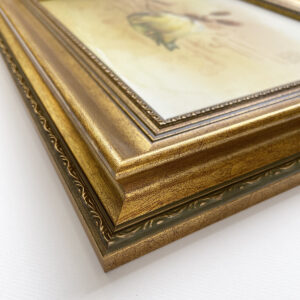 Oprawa: Rama drewniana w złotym kolorze, przodu szyba antyrefleksyjna.