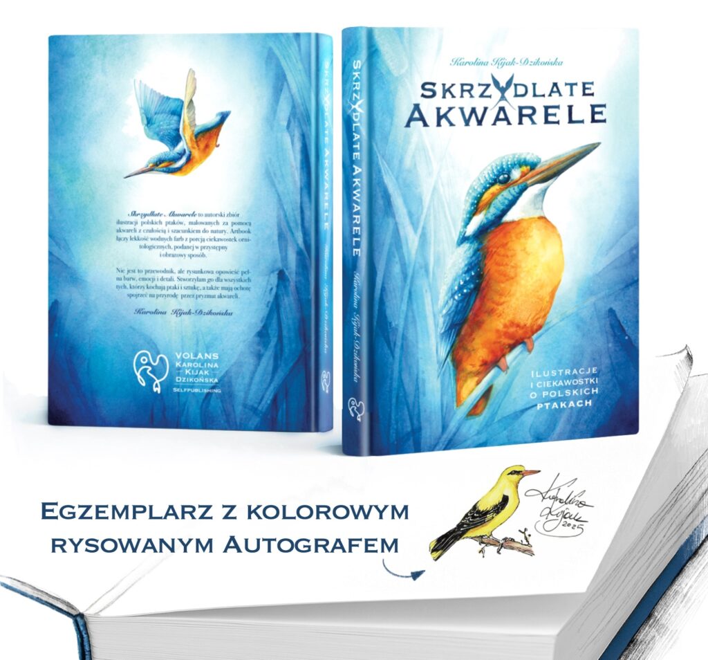 Skrzydlate akwarele to autorski artbook będący zbiorem ręcznie malowanych akwareli autorstwa Karoliny Kijak-Dzikońskiej. Przedstawiają one 180 gatunków polskich ptaków. Ilustracjom towarzyszą krótkie, lekkie opisy z ciekawostkami, które przybliżają ptasie zwyczaje i drobne detale, na które warto zwrócić uwagę podczas spaceru. To książka o zachwycie: nad naturą, codziennością i chwilą zatrzymaną w rysunku oraz akwareli.